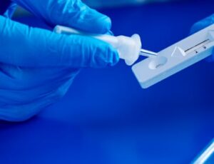 The Monkeypox Virus Antigen Rapid test offers a non-invasive, lateral flow assay that is both rapid and precise, making it easy to perform. This test leverages specific antibodies designed to target the Monkeypox virus antigen, which are immobilized on a reactive membrane. When the Monkeypox virus is present in the swab samples, including skin lesion exudate, acne scab swabs, or nasopharyngeal swabs, the specific antigen is captured by a secondary antibody conjugated with colloidal gold particles. This conjugate is then detected by a generic antibody, which is affixed to the reactive membrane in the form of a test line. The presence of this test line confirms the correct performance of the assay, providing a visual indication of the presence of the Monkeypox virus antigen in the sample. This non-invasive method provides a quick and convenient way to screen for the presence of the Monkeypox virus, with results typically available within minutes. It is an important tool for early detection and can aid in promptly implementing appropriate treatment and own containment